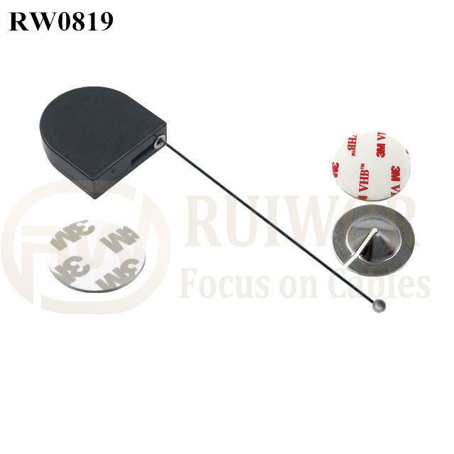 RW0819 Mini Tether rétractable en forme de D plus plaque métallique collante circulaire de 22 mm
