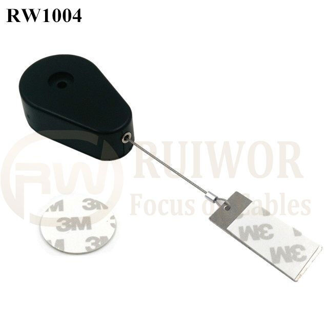 RW1004 attache de sécurité rétractable en forme de goutte plus plaque métallique adhésive rectangulaire de 45 x 19 mm
